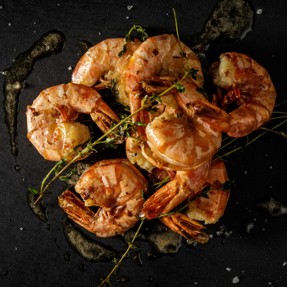 ohne Kopf,mit angeschlizter Schale - leicht zu "pulen".Ideal zum Grillen,für Salate & Nudelgerichte