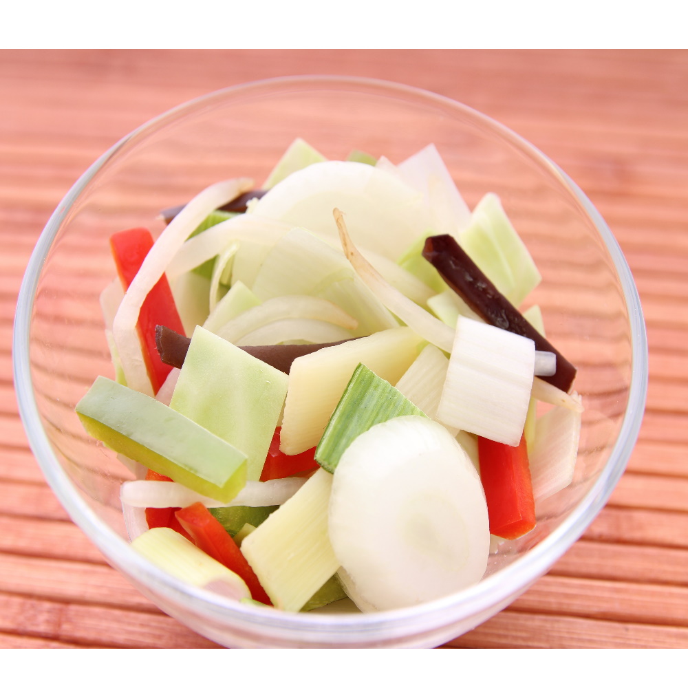 Weißkohl, Porree, Paprika, Zwiebeln, Bambus, Bohnenkeimlinge