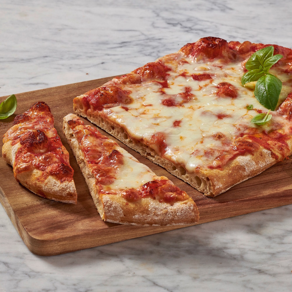 Vorgeb.Steinofenpinsa mit aromatischer Tomatensoße & feinem Mozzarella aus Büffelmilch. 29 x 18 cm