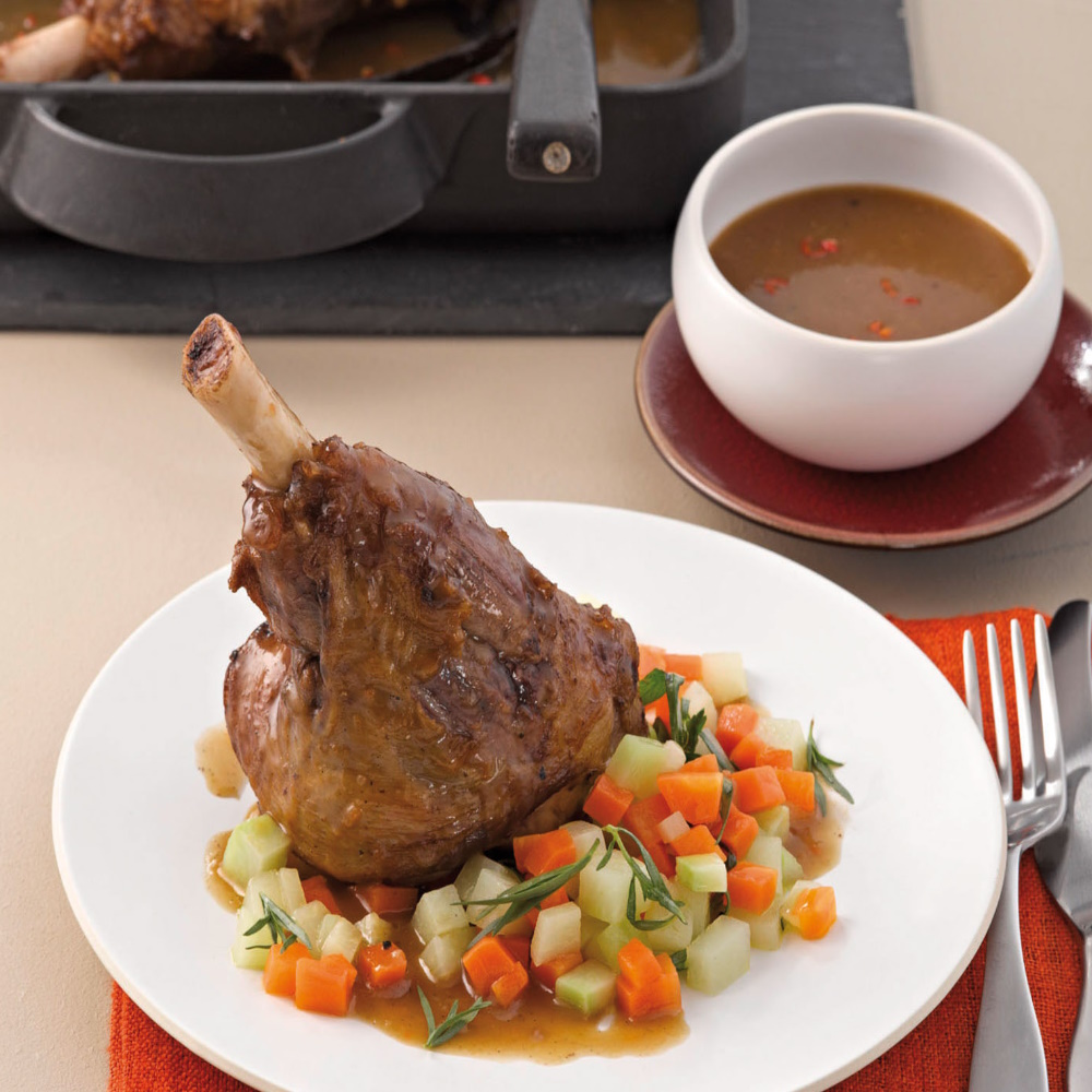 Die Lammhinterhaxe ist der hintere Teil des Beins vom Lamm. Hinterhaxen sind deutlich fleischiger als Vorderhaxen und perfekt geeignet für ein herzhaftes Schmorgericht.