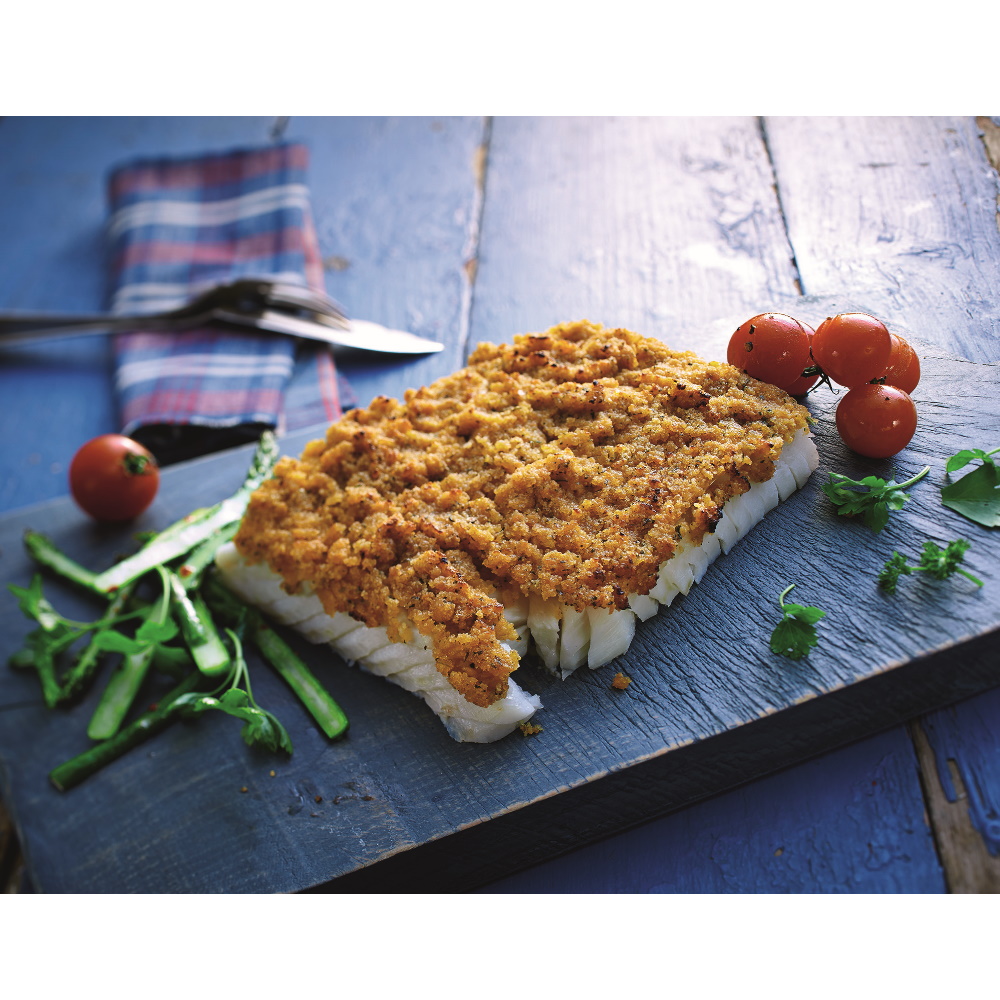 Alaska-Seelachsfilet mit einer würzigen Käuterauflage. MSC-C-53059