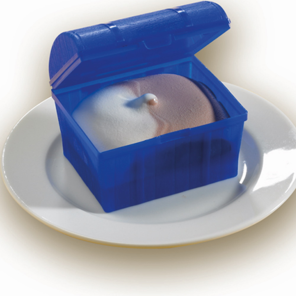 Kiste gefüllt mit Vanilleeis und Schokoeis und einer kleinen Überraschung