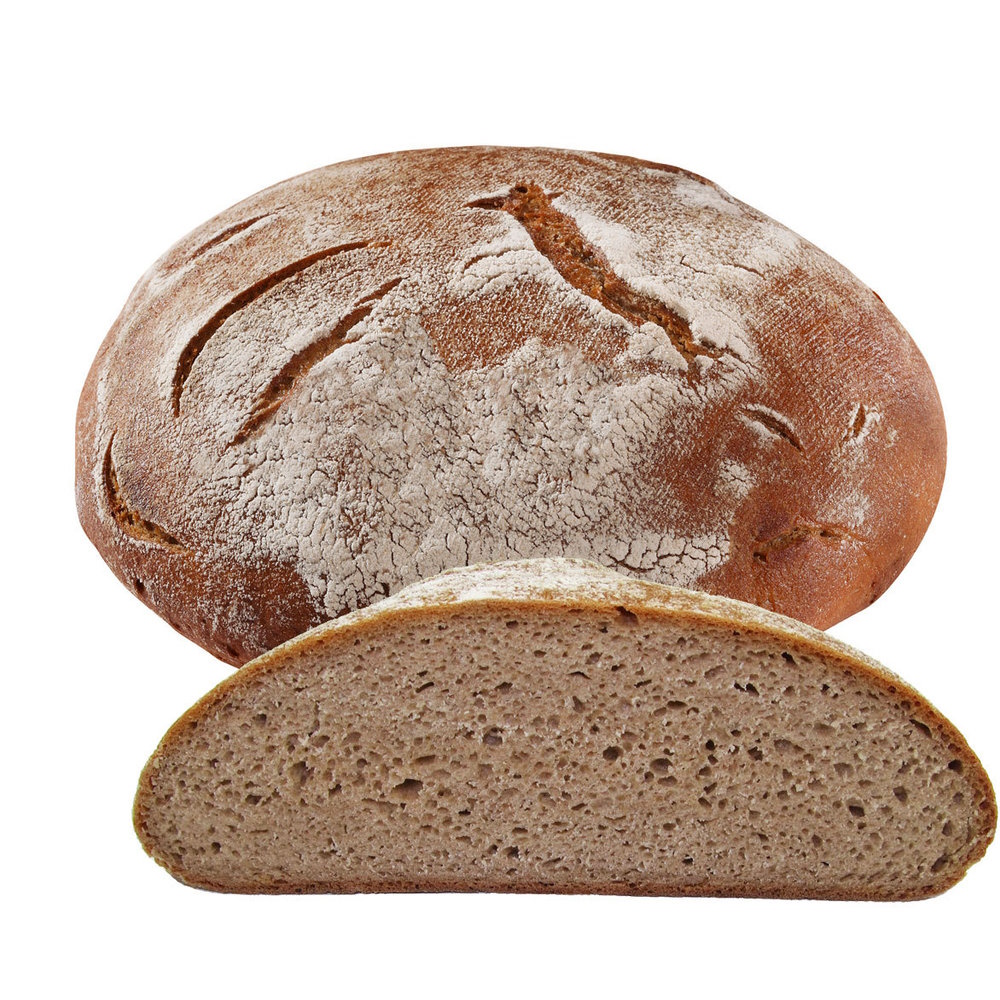 Dieser runde Laib aus reinem Roggenmehl mit Vollsauerteig kommt ganz ohne Hefe aus. Der Teig wird bei starker Hitze auf Stein gebacken. So entsteht ein besonders saftiges Roggenbrot mit leckerer Kruste.Vorteile:- weizenfrei und hefefrei- beliebter Brotzeitlaib- stabile Kruste und lockere Porung