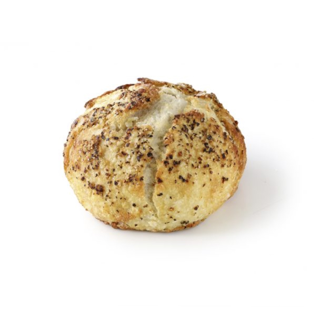 Der Klassiker Kartoffelbrötchen hier einmal in neuem Gewand: Mit Sauerteig, 4,3% Kartoffelflocken und Meersalz hergestellt, sorgt eine köstliche Salz-Pfeffer-Paste für den würzigen Pfiff und eine geschmacklich perfekte Abrundung. Durchmesser: 9 – 10 cm.