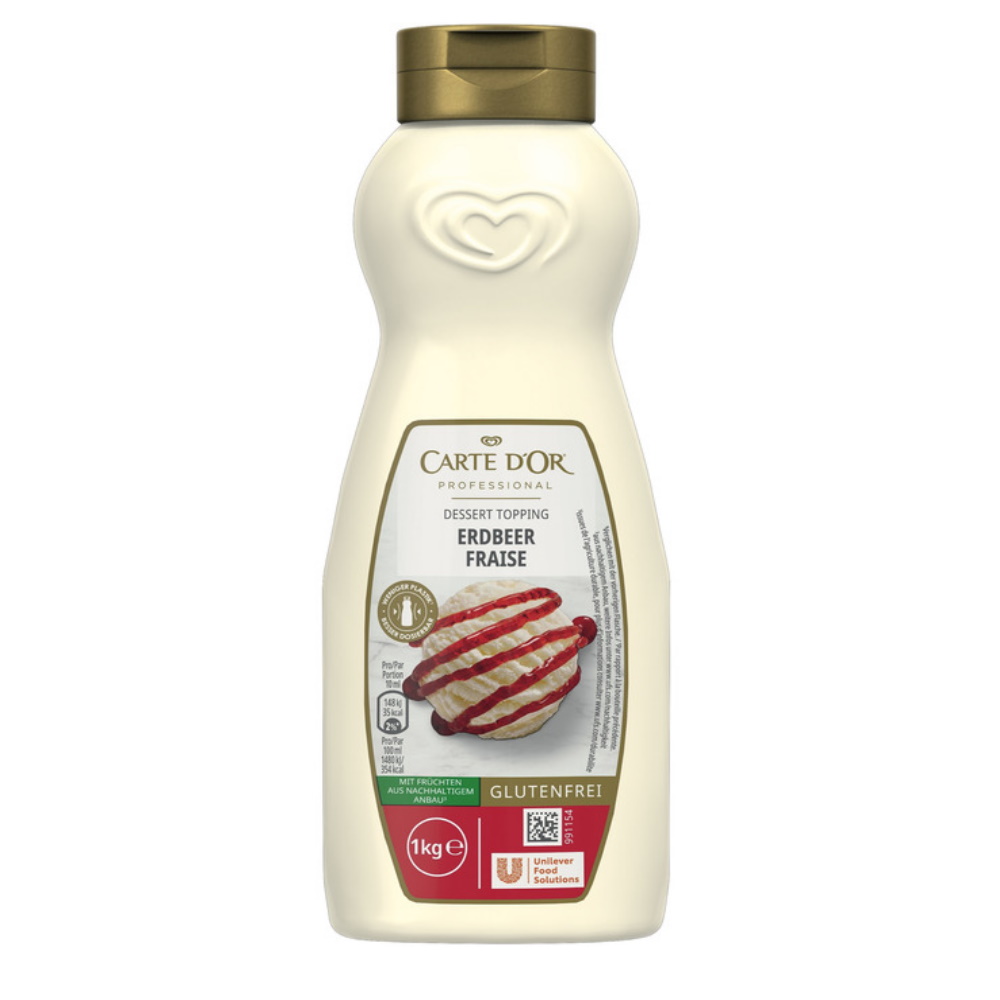 Fein-, fruchtige Note und optischer Genuss. Hergestellt mit nachhaltig angebauten Erdbeeren. Vielfältig einsetzbar.Die Vorteile der Carte D'Or Flasche: