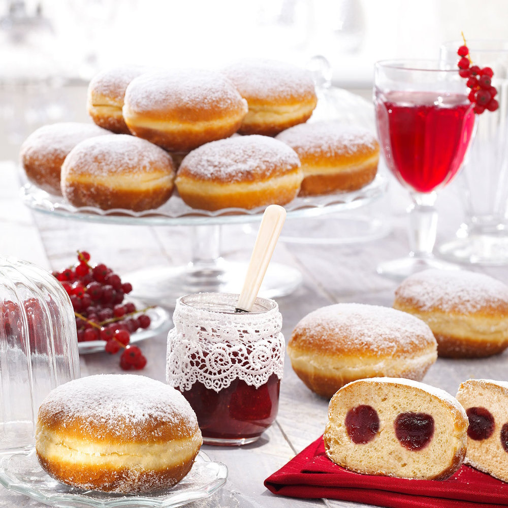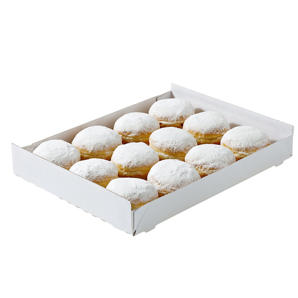 Verpackt in 4 Steigen à 12 StückNeue verbesserte Rezeptur!Der doppelt gefüllte Berliner mit lockerem Hefeteig passt mit dem intensiven Cassisaroma der leckerer Himbeer-Johannisbeerfüllung ideal zum süßen Puderzucker auf dem gold-gelben Krapfen. Für einen Berliner mit feiner Kristallzuckerbestäubung empfehlen wir Artikel ED15.Vorteile:- Duftet wie frisch gebacken- Als süßer to go-Snack- Hochwertige Fruchtfüllung- Puderzucker haftet auf dem Berliner