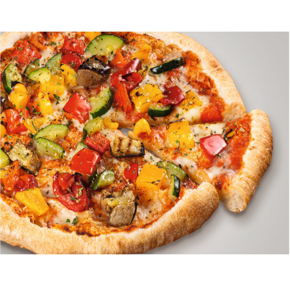 Bis zum Aufbacken gefroren aufbewahren. Ofenprogrammierung für ein optimales Backergebnis: Schritt 1 - Umluft: Ein, Unterhitze: Ein, Grillfunktion: Aus, Temperatur: 275 °C, Zeit: 2:45 Minuten. Schritt 2 - Umluft: Ein, Unterhitze: Aus, Grillfunktion: Aus, Temperatur: 275 °C, Zeit: 0:25 Minuten, Schritt 3 - Umluft: Aus, Unterhitze: Aus, Grillfunktion: Ein, Temperatur: 0°C, Zeit: 0:20 Minuten. Den CiBO-Ofen vorheizen, die Pizza aus der Verpackung entnehmen, das zuvor eingestellte Programm auswählen und die Pizza backen.