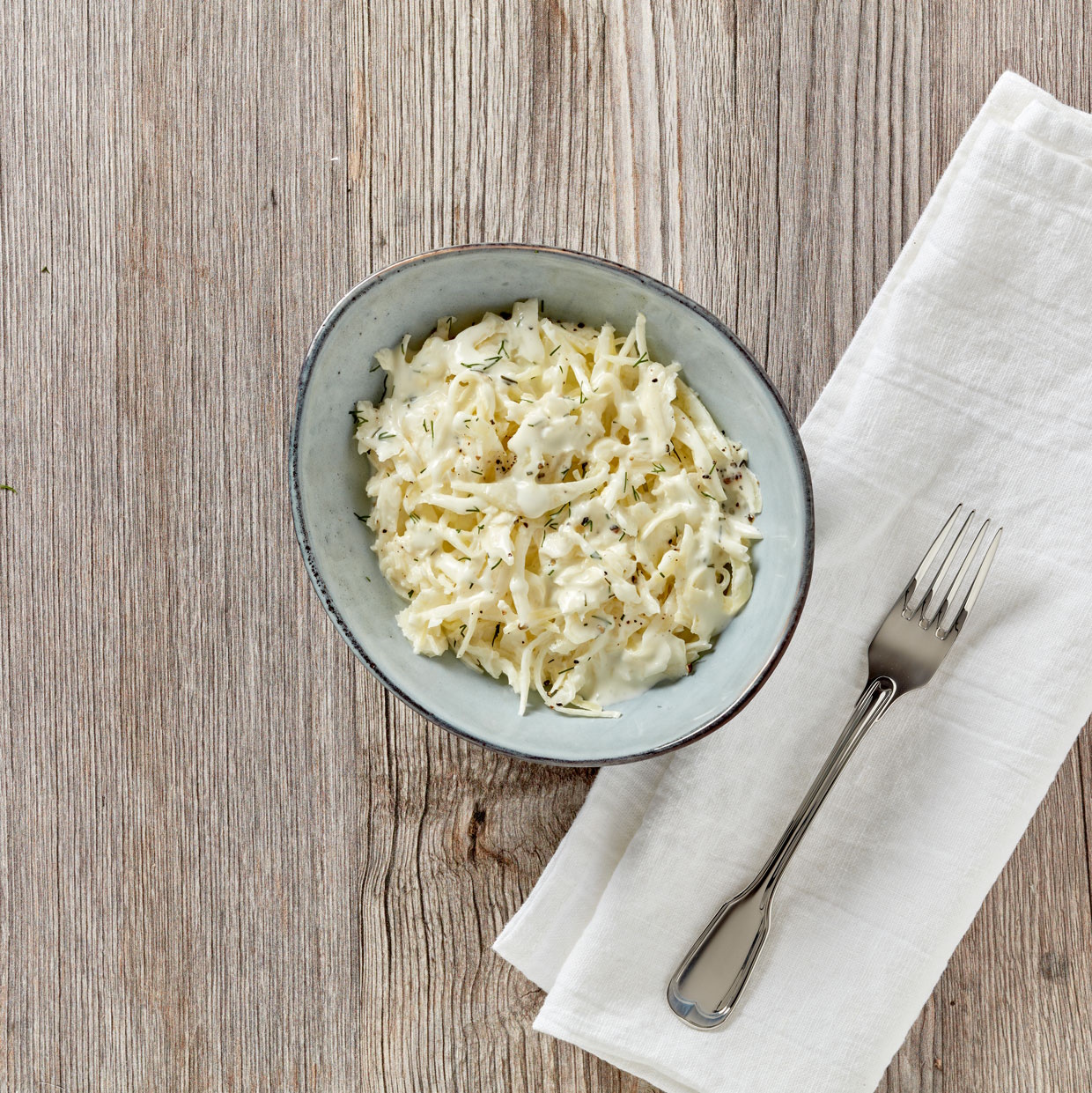 Weißkrautsalat in Dill-Dress.